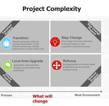 Complex Projects: Step changes to business operation involving changes to work processes and the work environment.